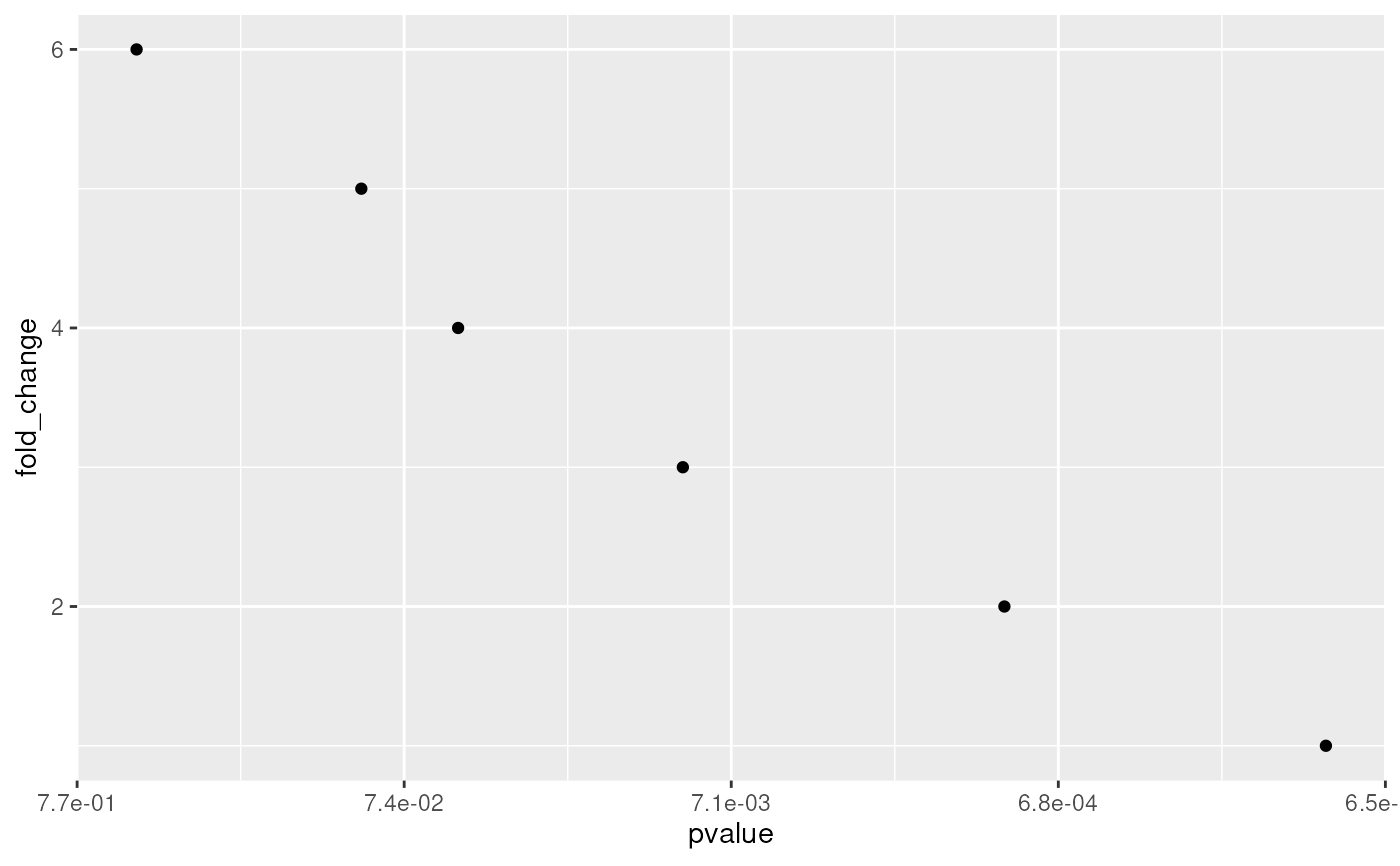 A wrapper function that provides evenly spaced ticks with scientific notation for log10 reverse transformed x-axis. This is particularly useful for plots showing p-values or other values where smaller values should be displayed larger. The function applies a log10 transformation and reverses the axis to better visualize p-values without hard transforming the data, while maintaining the original p-value scale for interpretation. This allows you to see the full range of p-values with proper scaling while keeping the original values readable.